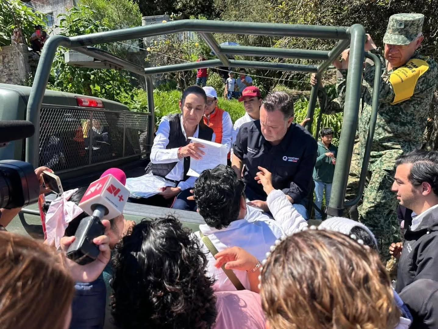 Querétaro, Qro.— Durante su visita a la Sierra Gorda queretana para recorrer las zonas más afectadas por las recientes lluvias, la presidenta de México, Claudia Sheinbaum Pardo, aseguró que el Gobierno Federal brindará apoyo directo a todas las familias damnificadas.