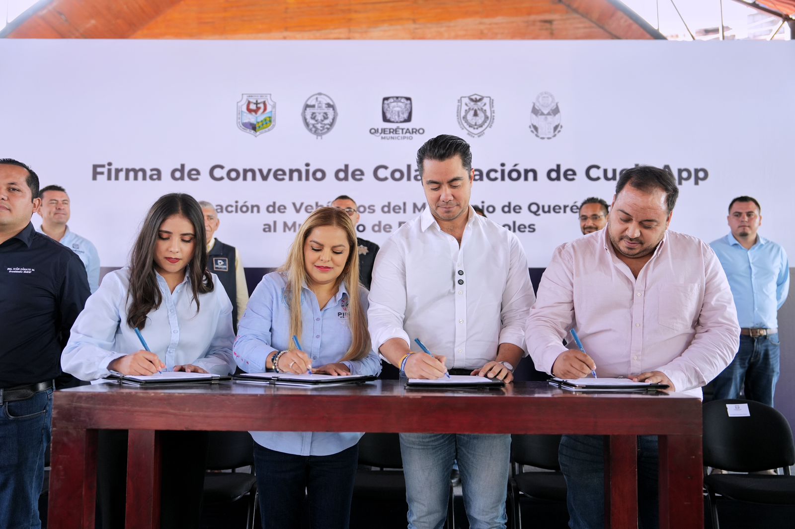 El presidente municipal de Querétaro, Felifer Macías, encabezó la firma del convenio de colaboración de la aplicación Cuelgapp con los municipios de Arroyo Seco, Jalpan de Serra, Landa de Matamoros y Pinal de Amoles, con el objetivo de reforzar la seguridad y brindar mayor tranquilidad a las familias serranas y del estado.