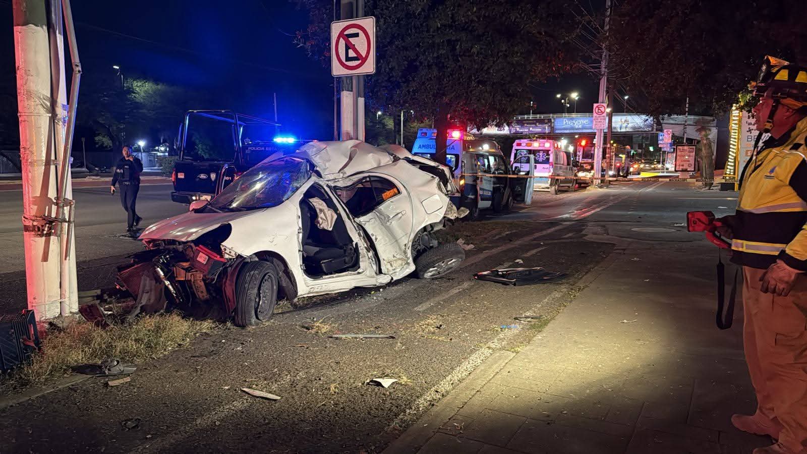 Durante la madrugada, se registró un accidente vial sobre Paseo Constituyentes, donde un vehículo aparentemente perdió el control y terminó impactándose contra un poste.