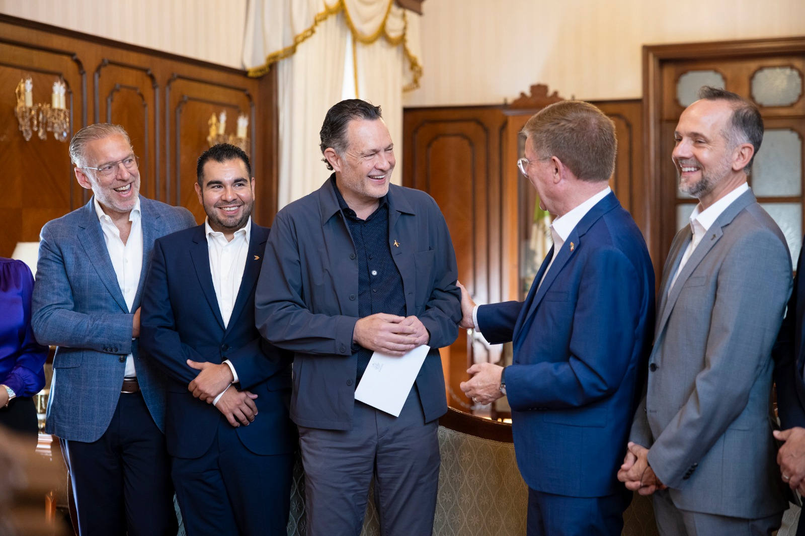 Estuvieron presentes el director de Transformación de Bombardier, Alexandre Paul; el gerente general de Bombardier México, Martin Dugas; el director de Comunicaciones y Asuntos Públicos de Bombardier México, Gerardo Medina; el jefe de Gabinete, Rogelio Vega Vázquez Mellado; el secretario de Desarrollo Sustentable, Marco Antonio Del Prete Tercero; y el director de Fomento Industrial, Alejandro Rolland Ruiz