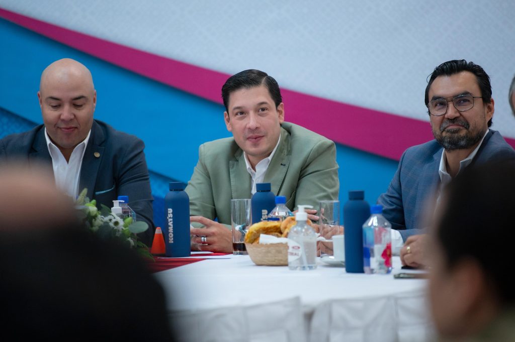 Durante el desayuno estuvieron presentes: Abraham Ibarra Villaseñor, secretario de Obras Públicas Municipales; Ricardo Collado Álvarez, gerente regional de Komatsu; Sergio Camacho Hurtado, secretario del XIX Comité Directivo de la CMIC; Rubén Armando Barroso López, tesorero del XIX Comité Directivo de la CMIC, y Alejandro Cabrera Sigler, presidente del Comité Consultivo de la CMIC.