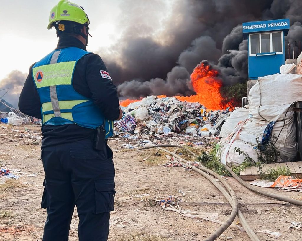 Querétaro, Qro. — El director de la Coordinación Municipal de Protección Civil de Querétaro, Lic. José Francisco Ramírez Santana, informó en rueda de prensa que el incendio en la recicladora de Santa Rosa Jáuregui continúa siendo atendido por las autoridades, aunque se mantiene bajo control.