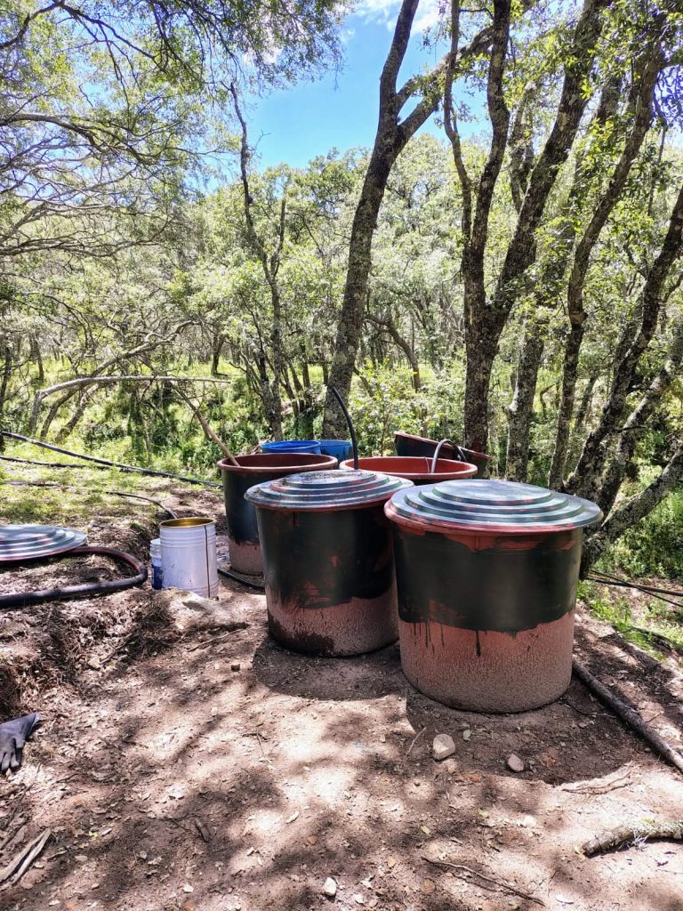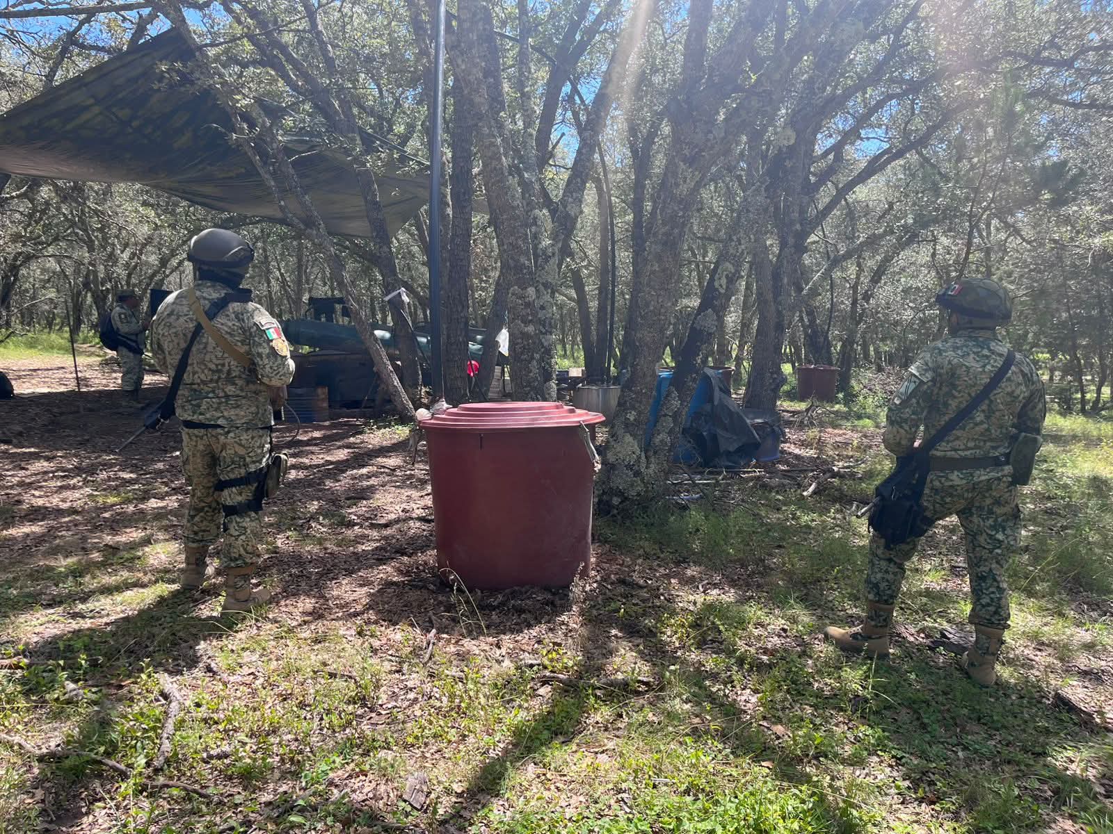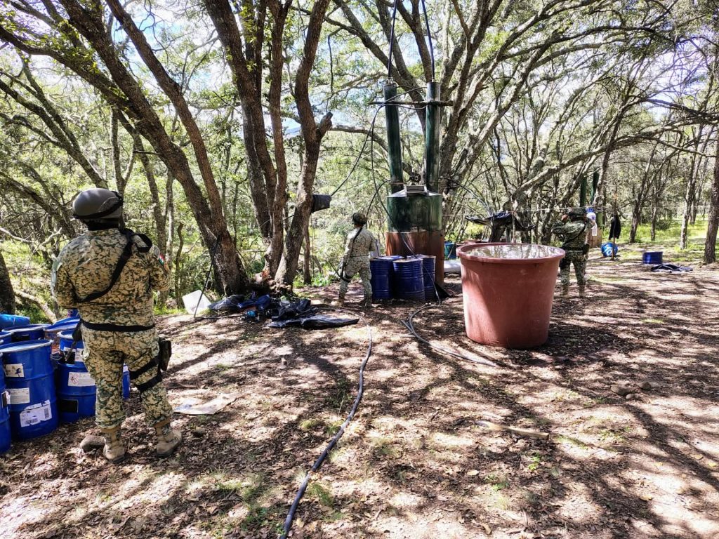 Durante los recorridos de vigilancia se aseguraron 1,790 litros y 528 kilos de químicos, además de tres destiladores y tres reactores metálicos utilizados para la producción de metanfetaminas.