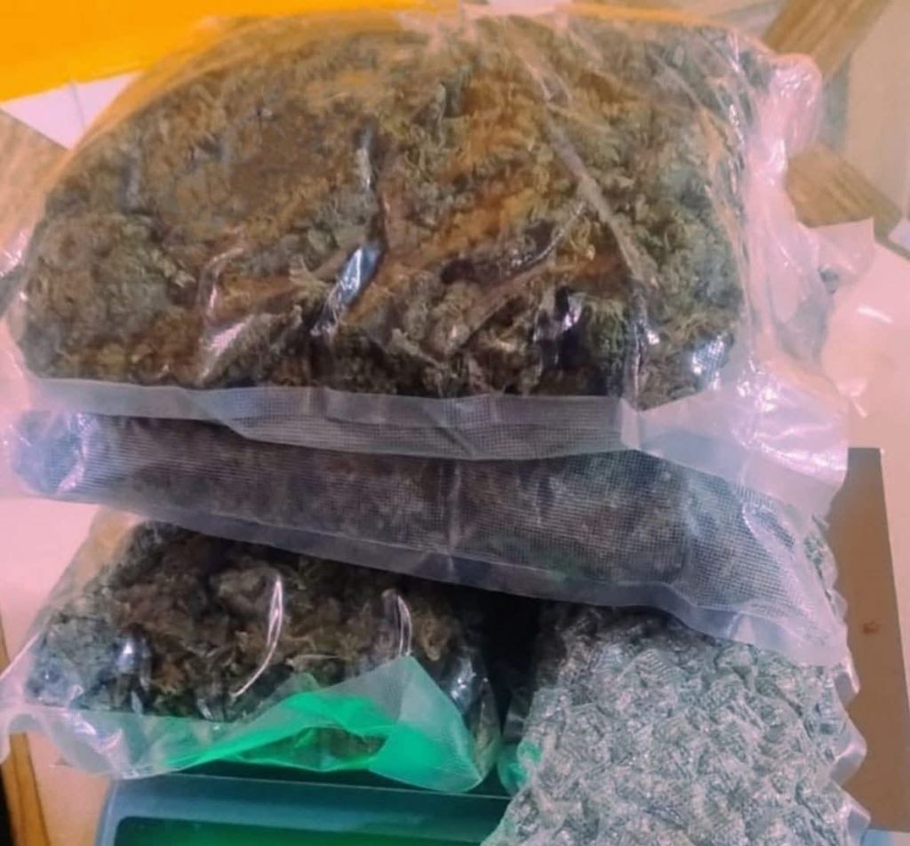 El individuo fue sorprendido en posesión de aproximadamente 2 kilos de hierba verde seca con características similares a la marihuana, por lo que fue asegurado de inmediato.
