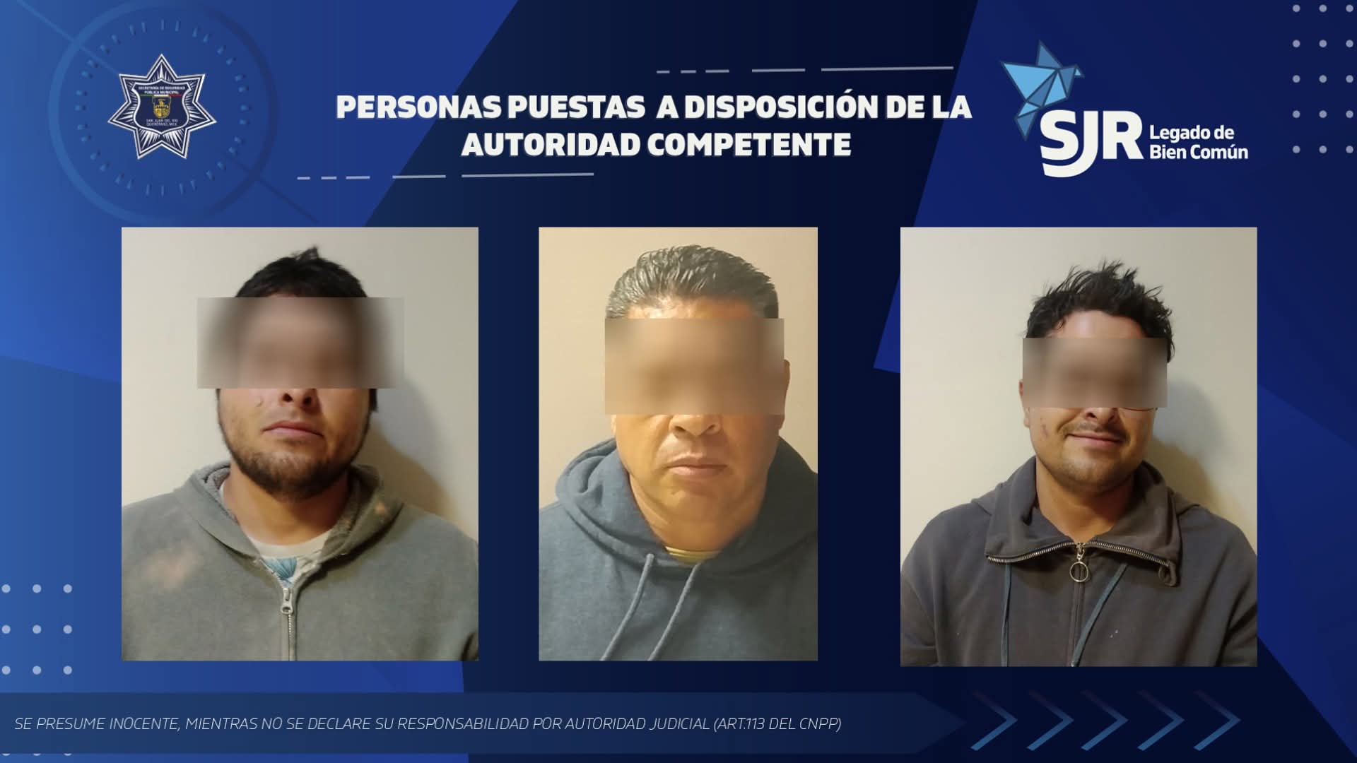 Tras una inspección en el sitio y con el señalamiento directo del afectado, los elementos policiales procedieron a la detención inmediata de los tres presuntos responsables, quienes fueron puestos a disposición de la Fiscalía General del Estado por el delito de allanamiento de morada.