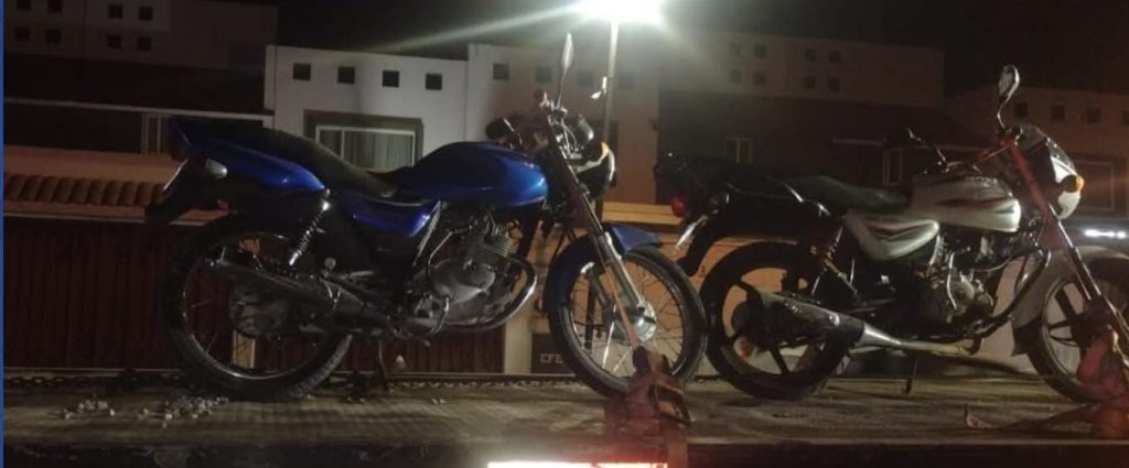 Tras una breve persecución, los oficiales les dieron alcance para efectuar una inspección preventiva; sin embargo, los sujetos adoptaron una actitud agresiva y se negaron a la revisión. Por ello, las motocicletas fueron aseguradas y ambos detenidos, siendo puestos a disposición de la Fiscalía General del Estado por el delito de desobediencia y resistencia de particulares.