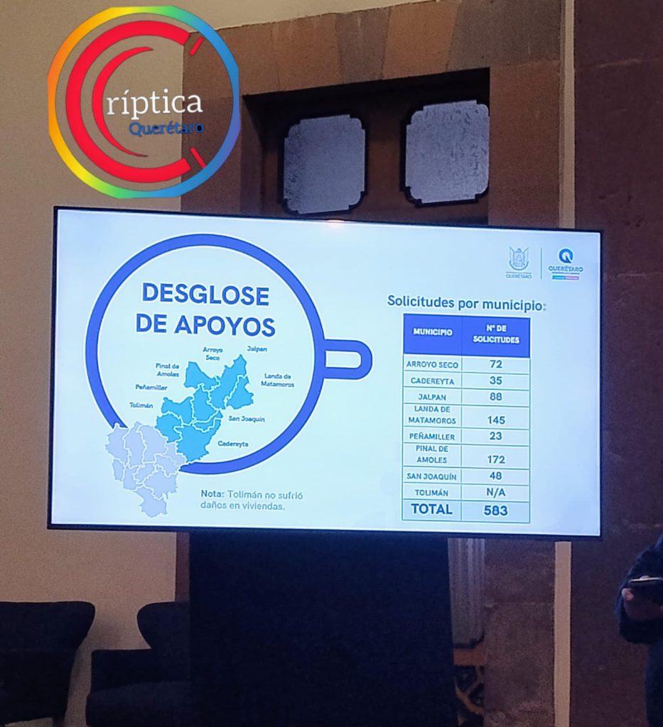 En total, se atendieron 583 viviendas en 279 comunidades de municipios como Arroyo Seco, Landa de Matamoros, Jalpan de Serra, Pinal de Amoles, Peñamiller, Cadereyta y San Joaquín. En sitios como Santa María de Cocos y El Timbre, los víveres fueron trasladados en helicóptero ante la falta de acceso terrestre.