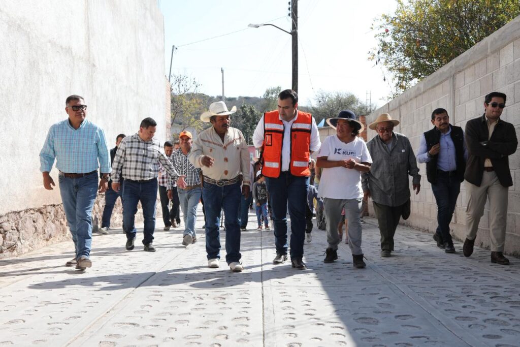 En un acto de compromiso con la comunidad, el Presidente Municipal, Gaspar Trueba Moncada, inauguró la urbanización a base de empedrado ahogado en mortero de la Calle Fresnos, una obra integral que beneficia a los habitantes de El Saucillo.