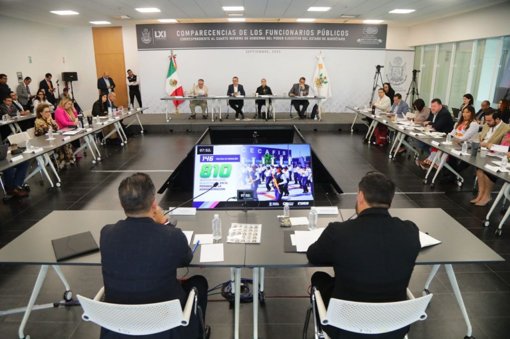 El secretario de Seguridad Ciudadana, Iován Elías Pérez Hernández, compareció ante la LXI Legislatura del Estado para dar cuenta de las acciones implementadas y los resultados obtenidos en favor de la seguridad de las familias queretanas, en el marco de la Glosa del Cuarto Informe de Gobierno del titular del Poder Ejecutivo, Mauricio Kuri González.