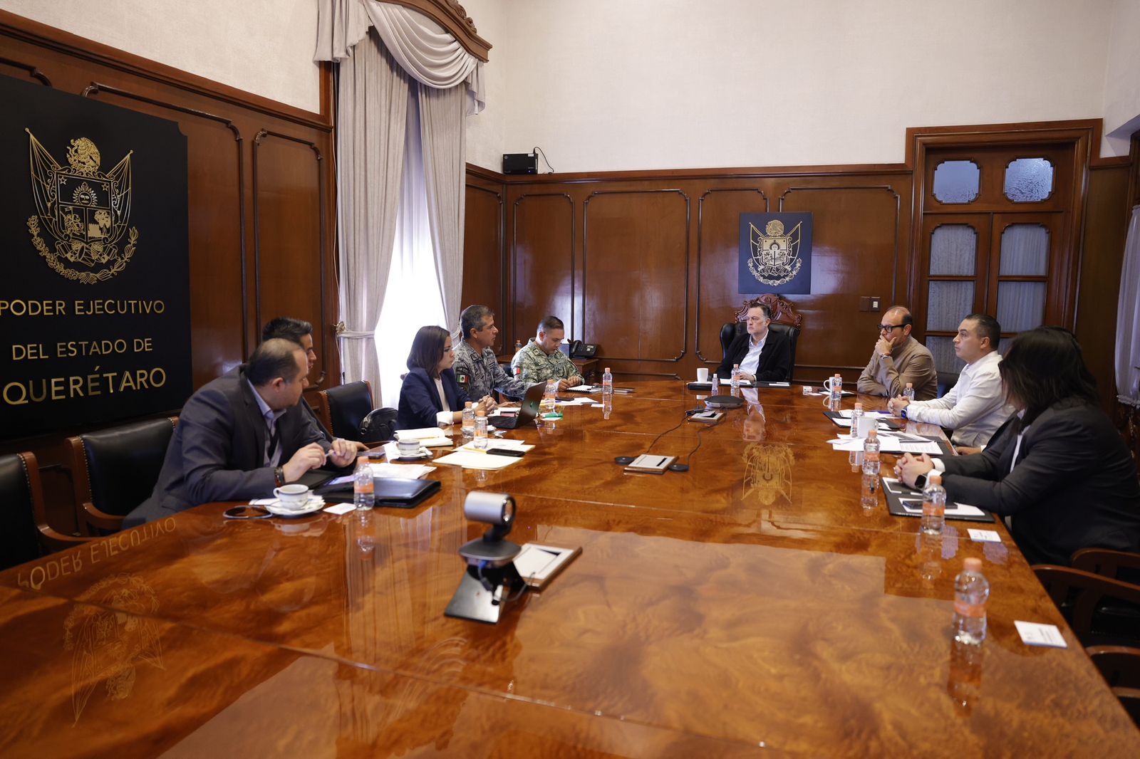 En seguimiento a la estrategia estatal para mantener y fortalecer los trabajos de coordinación y vinculación de manera permanente entre los tres órdenes de gobierno en materia de seguridad, el titular del Poder Ejecutivo, Mauricio Kuri González, encabezó la Mesa para la Construcción de Paz y Seguridad en Querétaro; donde refrendó como eje prioritario de su gestión defender a las y los queretanos, mediante una labor conjunta interinstitucional enfocada en enfrentar los retos en procuración de justicia y preservar la paz en la entidad.