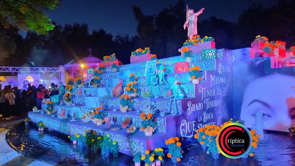 “Queremos invitar a todas las queretanas y queretanos a que disfruten nuestras festividades de Día de Muertos en la Alameda Hidalgo. Hoy la Alameda está más bonita que nunca. Vengan, viernes, sábado o domingo. Desde las 3 de la tarde tendremos espectáculos artísticos y culturales. Disfrutar del altar monumental, del kiosco, del vitromosaico que se ha preparado con mucho cariño para la gente, el tapete monumental dedicado a nuestras estrellas de la época de oro del cine mexicano. Hay actividades culturales. Pueden dejar recados también para sus seres queridos en el portal que dejamos ahí muy bonito para dedicar palabras a quienes ya se nos adelantaron en el camino. Hoy como nunca antes tenemos una Alameda viva, bonita, para que las familias los disfruten en una de las tradiciones más importantes de nuestro país, que es el Día de Muertos”, comentó.