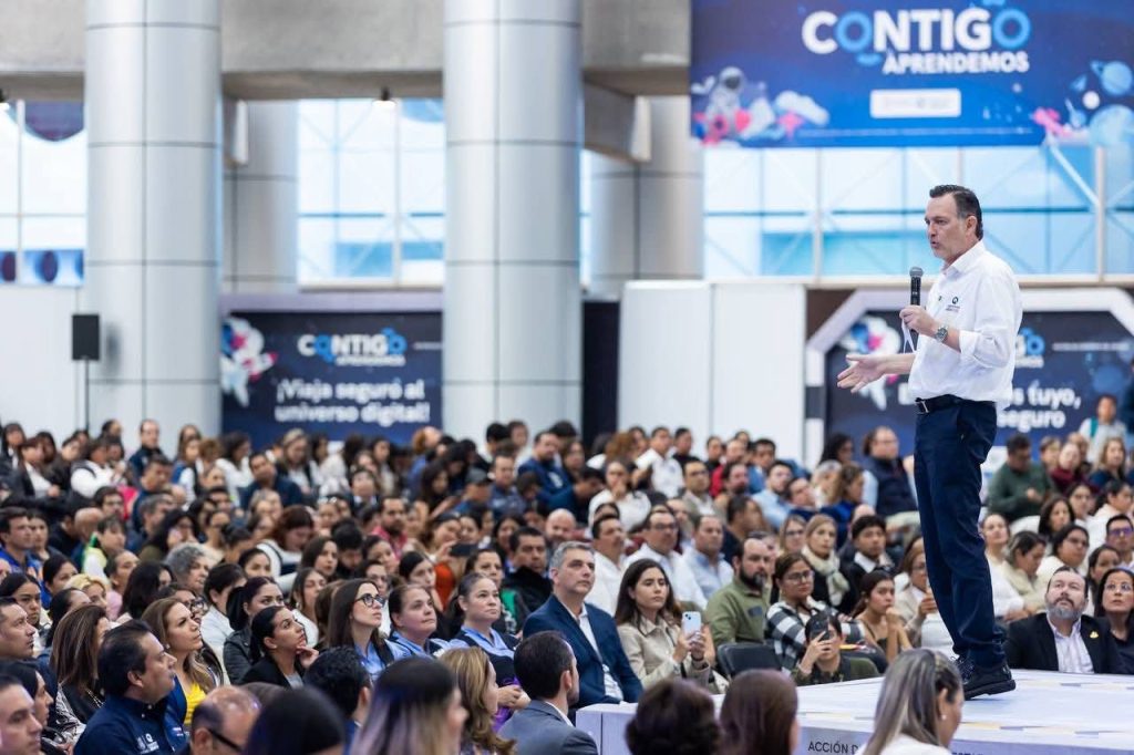 El titular del Poder Ejecutivo estatal, Mauricio Kuri González, encabezó la inauguración del evento “Contigo Aprendemos 2025”, que busca promover el uso responsable de la tecnología y la construcción de entornos digitales seguros para niñas, niños y adolescentes, a través de conferencias, talleres, presentaciones artísticas, zonas interactivas y espacios de convivencia. Durante el encuentro también se firmó el Pacto “10 por la lectura”, orientado a fomentar el gusto por los libros.