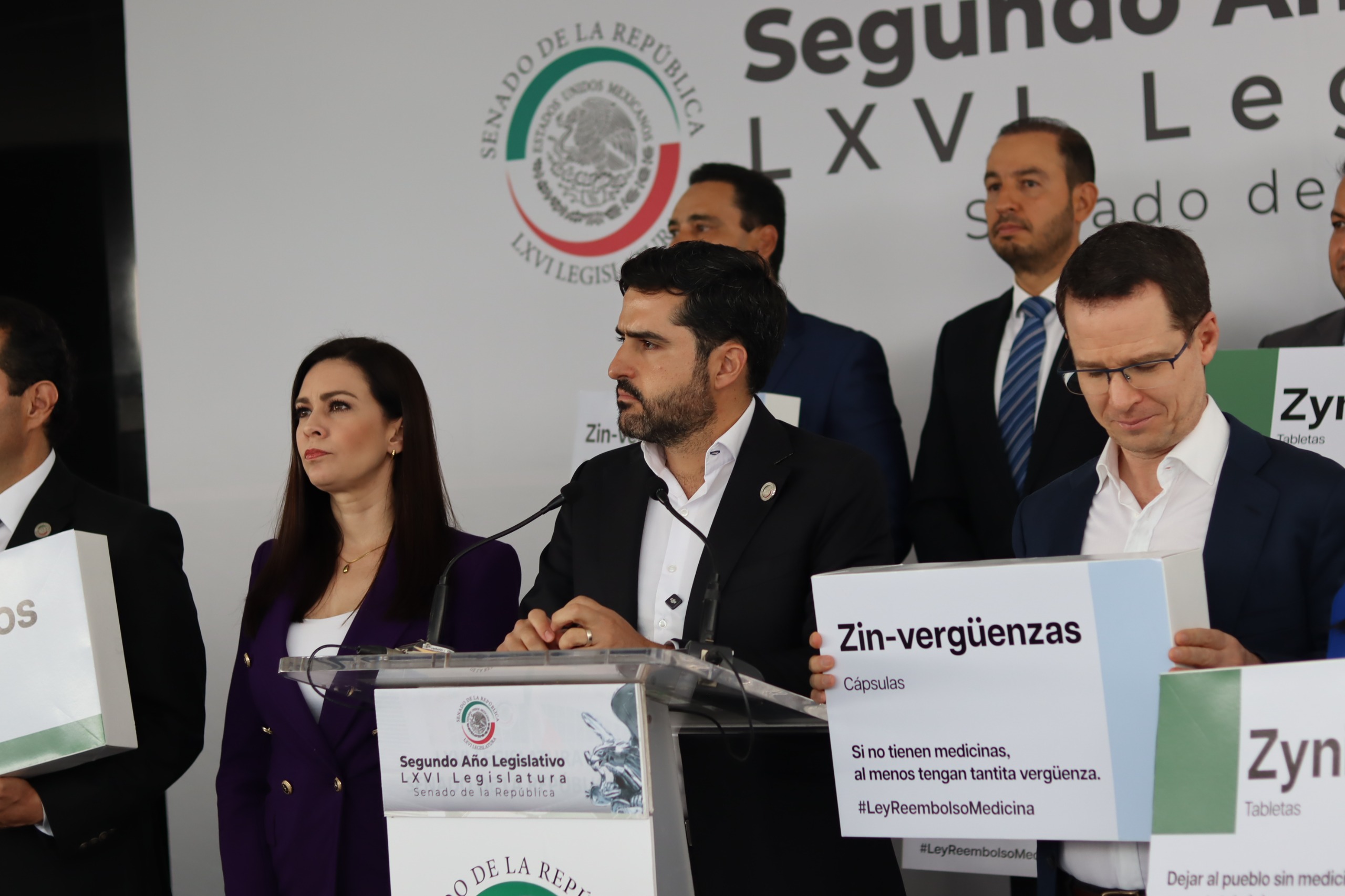 Arropado por todos los senadores del grupo parlamentario del PAN, el Senador Agustín Dorantes Lámbarri, anunció en conferencia de prensa que la Ley Reembolso será promovida por todo su grupo parlamentario en aras de hacer eco y lograr el mayor apoyo ciudadano posible para lograr que las y los derechohabientes del IMSS y el ISSSTE no tengan que sufrir más la ineficiencia de las autoridades que han provocado el desabasto de medicinas.