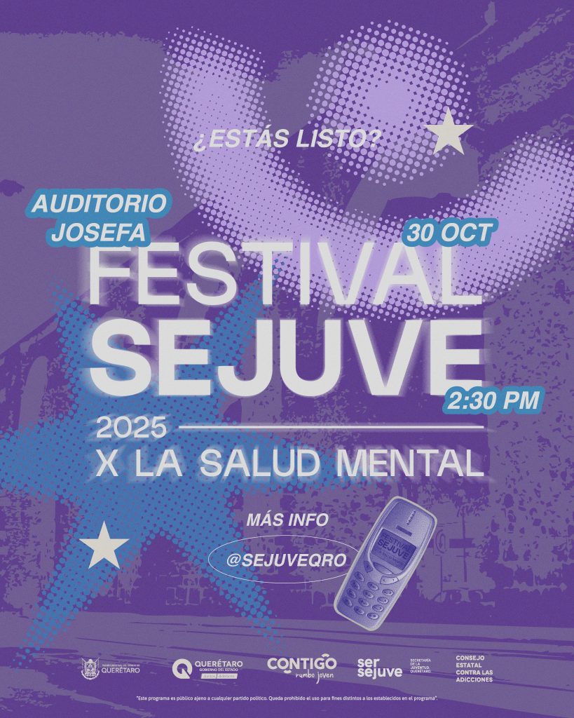 En el marco del Mes de la Salud Mental, la secretaria de la Juventud (SEJUVE), Virginia Hernández Vázquez, anunció el “Festival SEJUVE 2025, por la salud mental”, que busca visibilizar la importancia del cuidado emocional y psicológico entre las y los jóvenes. El evento se realizará el jueves 30 de octubre de 2025, a partir de las 14:30 horas, en el Auditorio Josefa Ortiz de Domínguez, con la expectativa de reunir a más de cuatro mil jóvenes de todo el estado.
