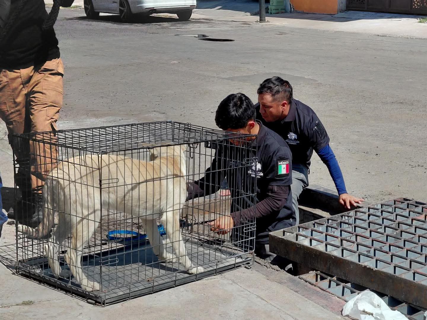 Tras un reporte realizado a la línea de emergencias 9-1-1, el equipo de rescate del Instituto Municipal de Protección Animal acudió de manera inmediata al fraccionamiento Los Héroes, donde se informó que dos perros habían caído al sistema pluvial.