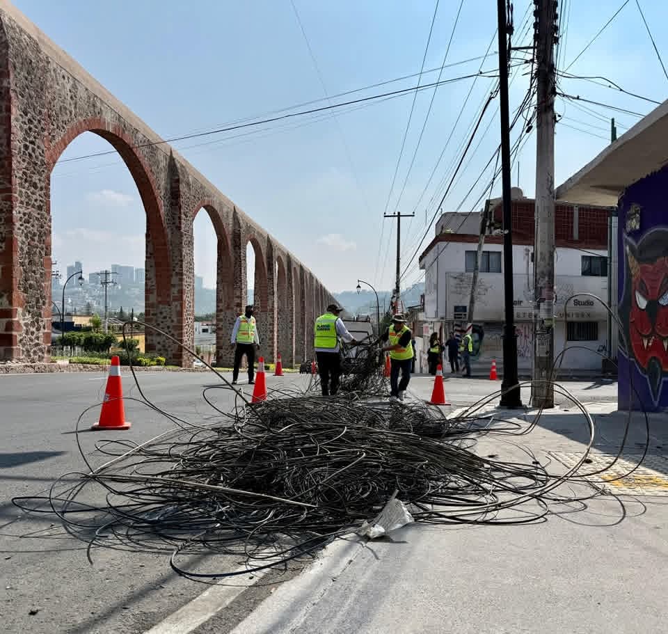 El boulevard Bernardo Quintana fue el punto más activo, con casi 4 toneladas de cables retirados, mientras que el Cerro del Sombrerete registró la menor cantidad. Además, se limpiaron más de 7,900 objetos de la vía pública en 255 colonias, reforzando el orden urbano.