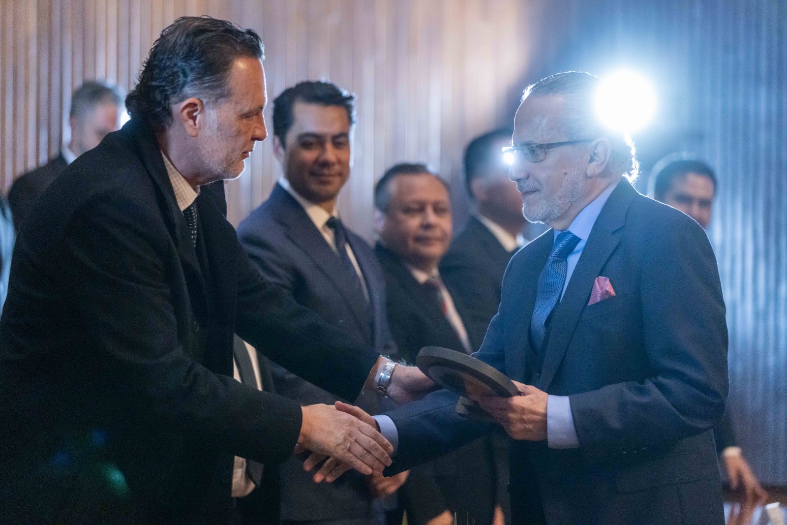 Finalmente, el Gobernador entregó reconocimientos a Víctor David Mena Aguilar, por su impacto en la industria de la construcción y el desarrollo empresarial en el estado, así como a Edgardo Cabrera Delgado, fundador y primer presidente de la FECAPEQ