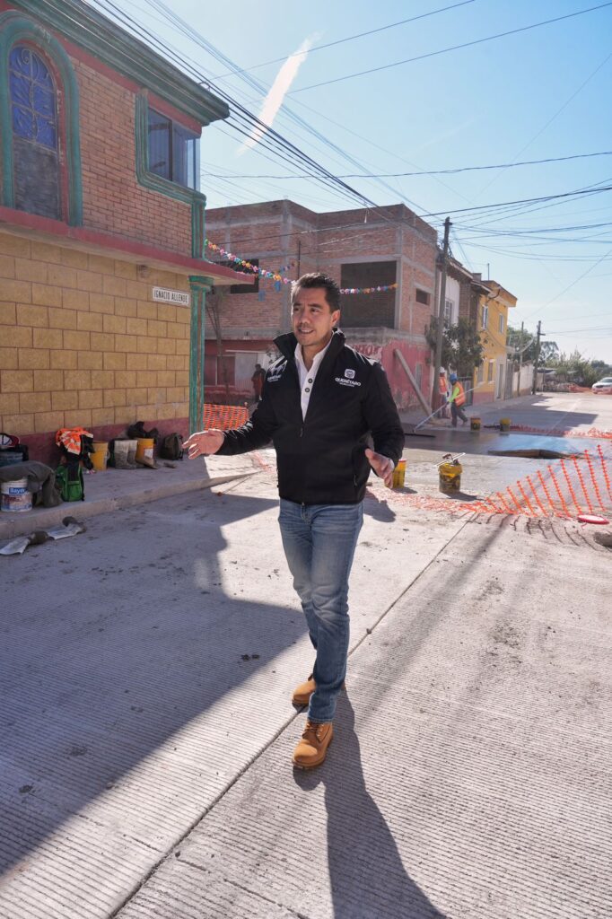 “Otra vez en Santa Rosa Jauregui y otra vez en la comunidad de Buenavista y trayendo resultados, compromisos cumplidos. Estamos a punto de terminar la calle de Ignacio Allende aquí en Buenavista, que conecta desde la carretera que va a San Miguel de Allende y que conecta hasta Camino Real, que llega directamente a la principal plaza aquí en Buenavista. Es una calle completa, además también estamos haciendo la calle de Melchor Ocampo. Son calles completas con red de agua potable, drenaje sanitario y obviamente concreto hidráulico. Es decir, esto va a durar años y años y años y con esto otra vez dignificamos la calidad de vida de las familias”, comentó.